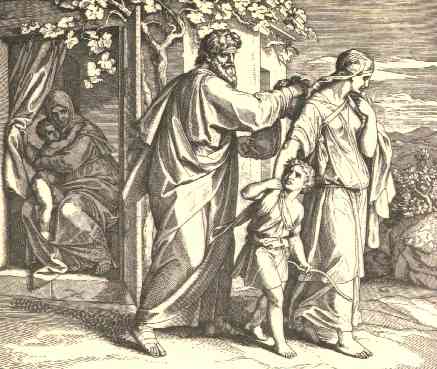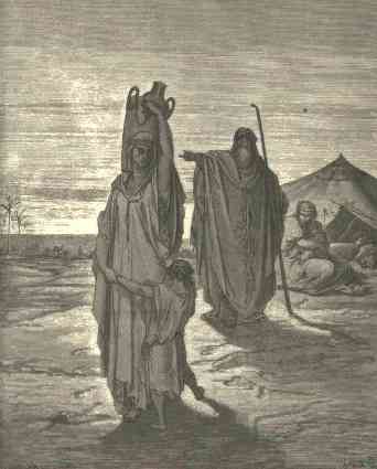And Abraham rose up early in the morning, and took bread, and a bottle of water, and gave it unto Hagar, putting it on her shoulder, and the child, and sent her away: and she departed, and wandered in the wilderness of Beersheba.