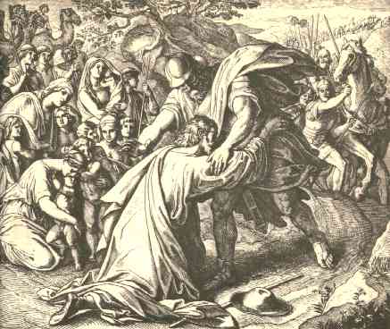 1 | And Jacob lifted up his eyes, and looked, and, behold, Esau came, and with him four hundred men. And he divided the children unto Leah, and unto Rachel, and unto the two handmaids. |