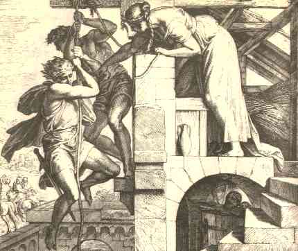 15 | Then she let them down by a cord through the window: for her house was upon the town wall, and she dwelt upon the wall.
