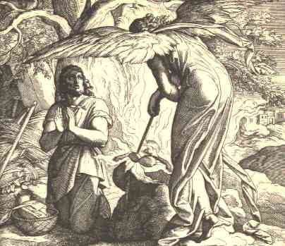 21 | Then the angel of the LORD put forth the end of the staff that was in his hand, and touched the flesh and the unleavened cakes; and there rose up fire out of the rock, and consumed the flesh and the unleavened cakes. Then the angel of the LORD departed out of his sight.