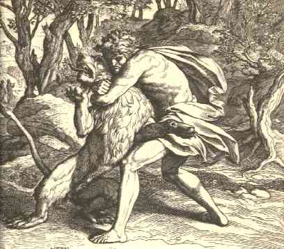 6 | And the Spirit of the LORD came mightily upon him, and he rent him as he would have rent a kid, and he had nothing in his hand: but he told not his father or his mother what he had done.