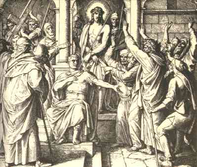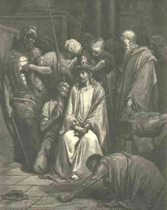 Then came Jesus forth, wearing the crown of thorns, and the purple robe. And Pilate saith unto them, Behold the man!